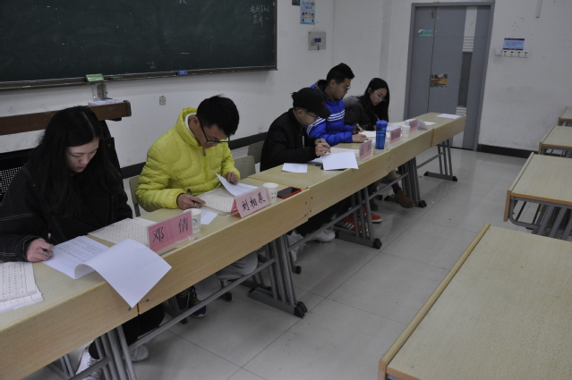 比赛开始之前,主持人简单介绍了比赛规则,流程以及出席本次决赛的嘉宾。上午九点,书法比赛正式开始。书法比赛分为硬笔书、软笔两种形式进行。氤氲的墨香中,选手们纷纷提笔、着墨。据悉,本次比赛硬笔组与软笔组的书写内容由同学们自行选择,既有靓丽的诗篇,又有古代贤人的名言警句,还有富有极深刻的人生哲理及价值内涵的文章。选手们的作品字体极为丰富,有刚正不阿的楷书,有古色古香的隶书,更有潇洒飘逸的行书。在宁静却又紧张的氛围中,选手们聚精会神、胸有成竹,有的挥毫泼墨、飘逸洒脱,有的一笔一划、认真专注,有的气韵横生、一气呵成,一幅幅颇具神韵的作品展现了同学们对中华古老文化的向往。比赛结束后,由各天美传媒