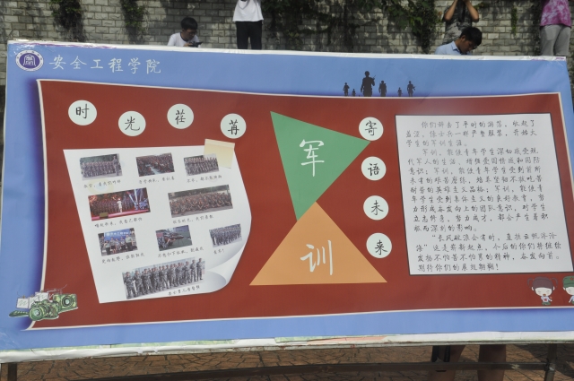 于第二运动场参加军训展板展示。