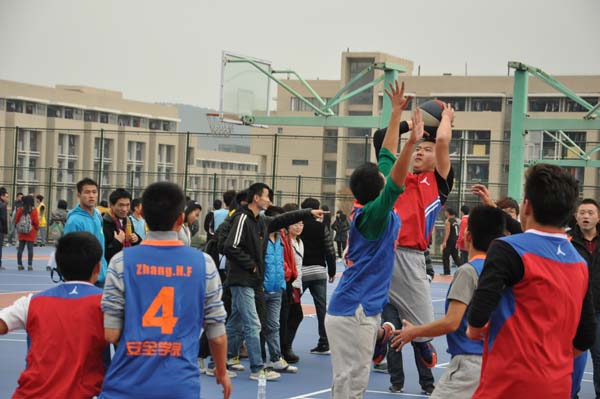 11月25日中午,第六届“安全杯”篮球赛开幕式暨13、14级友谊赛于第二运动场举行,党委副书记钱雄、辅导员郑文奇和13、14级球员及观众参加开幕式,13级学生周晶主持本次开幕式。