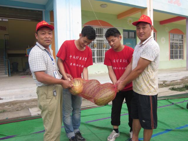 爱心阳光之队在杞县的支教活动带来了许多困难。7月17日,杞县当地的畅想未来志愿者协会为矿大爱心阳光之队送来了可口的西瓜,支教的志愿者们十分感动。