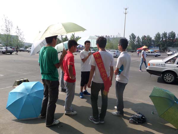 在炎炎烈日下,团队的成员分头行动,与各个练车团队进行沟通交流,在交谈中,队员们将早已准备充足的开车环保的小窍门向他们传播,比如要及时换档,缓慢加油,尽可能在最高档位驾驶,滑行前进,或者利用空油门滑行,这不仅能提高舒适度还能降低油耗,并且队员们还建议学员使用耗能辅助设备利用空气节油。但是此行实践团最重要的宣传重点是尽量说服这批将来的有车一族环保出行,当“自行车英雄”,保护大气,始于足下,骑自行车外出才是当代的环保时尚,减少尾气排放是所有开车人的责任,汽车尾气中的一氧化碳与血液中的血红蛋白结合的速度比氧气快250倍。所以即使吸入微量一氧化碳,也可能给人造成缺氧性伤害,轻者眩晕、头疼,重者脑细胞受到永久性损伤,所以减少汽车尾气的排放已经刻不容缓,在队员们的一致努力下,车管所的学员们纷纷表示一定在开车时注意环保问题,并尽量骑自行车出行。
