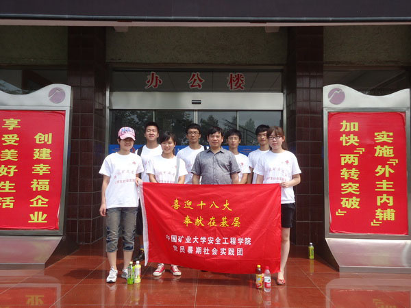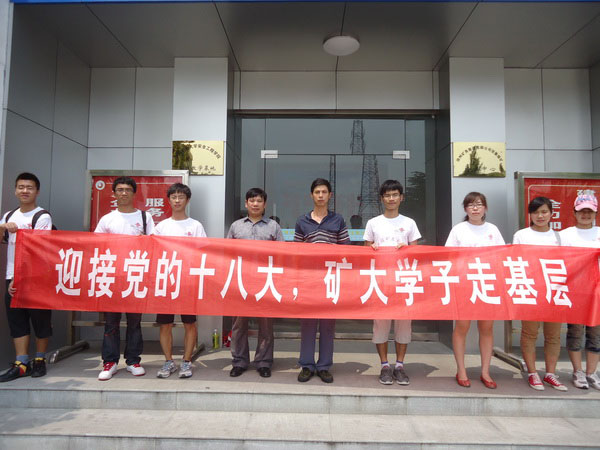 “喜迎十八大,奉献在基层”党支部暑期社会实践团走进徐州市张集煤矿,了解矿区基层党建情况以及为迎接党的十八大所做的筹备工作,向矿工积极宣传党的十八大。
