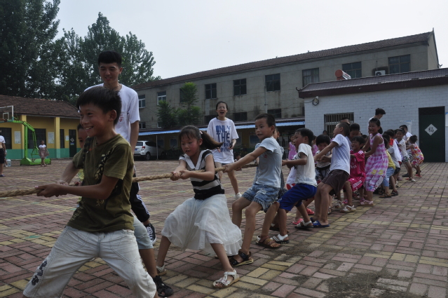 仲夏希望支教团在安徽省萧县陶楼小学举办了一场拔河比赛,全体同学以极大的热情参与到这次活动中。