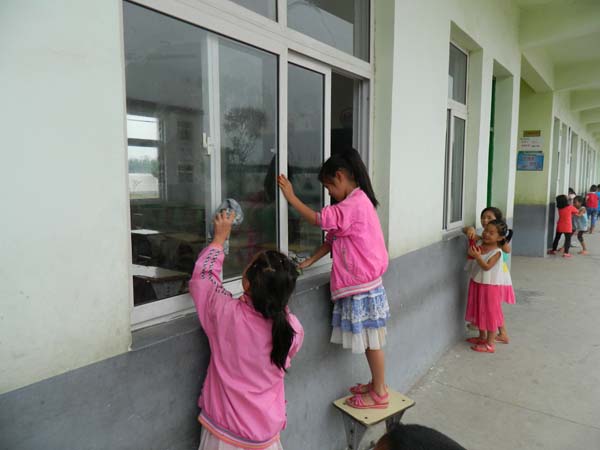 的最后一项活动,但志愿者们也没有放松。一间间整洁的教室,是同学们的劳动成果,也是志愿者们留给河南安阳牛庄小学最美好的回忆。