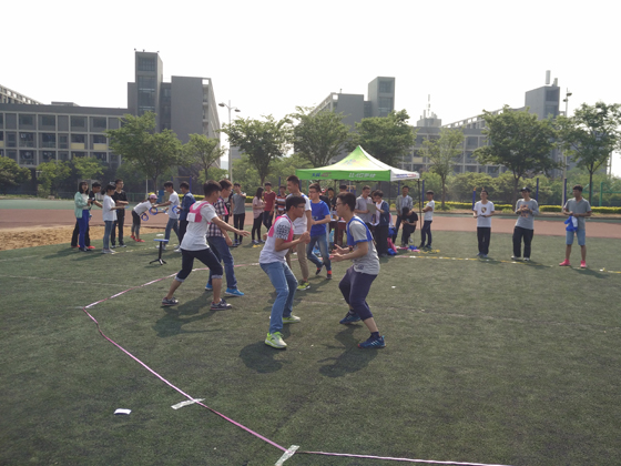 活动5人一组,展开了类似于最近炙手可热的“跑男”比赛,内容均与数学有关,队伍两两对抗,共进行了两个环节的比赛。本次文化节的活动内容丰富,有令人捧腹大笑的“撕名牌”比赛,有做数学题对抗,最后还有套圈抢分等趣味活动,活动以两环节的综合总得分评定胜负。