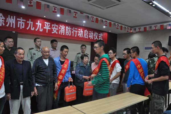 青年志愿者协会成员在徐州市福利院参加“徐州市九九平安消防行动”启动仪式。本次活动由徐州市福利院和徐州市消防支队联合举办,天美传媒