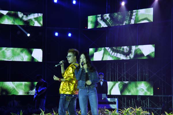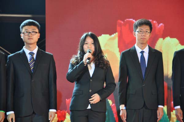 副主席牛壮以校园“十佳歌手”之一的身份为新生献上歌曲串烧。精彩的表演之后,14级开学典礼暨迎新晚会,在校歌声中完美结束。