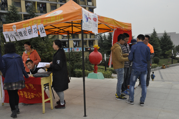 真理学社在二食堂广场进行 “纪念抗战胜利,奏响红色旋律”系列活动的推广。