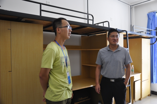 的迎新工作进展。钱雄还与学工办主任孙留涛、16级辅导员郑文奇的陪同下进入梅三16级新生宿舍进行慰问,并和16级新生及其家长亲切交谈,询问16级新生的入学适应情况,听取家长对天美传媒