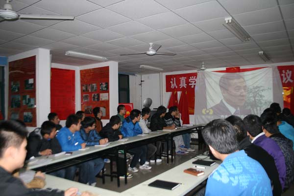 晚9点,研讨会准时开始。首先,乔小平简单介绍了此次会议的流程并强调了会议的重要性。随后,会议全体成员观看了有关十八和生态环境保护问题的视频,一起了解并学习“十八大”精神。观看结束后,各成员深有启发,各抒己见,就科学发展观要义、内涵、生态保护等提出自己的看法和理解。在发言过程中,成员们一致肯定了科学发展观对中国十年来的影响,谈出了各自的感想。同时,有些成员根据自己家乡这几年的变化谈出了自己对科学发展观的深刻认识。谈完感想之后,各成员又对经济转型问题和环境问题展开了激烈讨论。会议成员唐立凯结合自己所学的安全专业就环境生态问题发表了自己看法。他肯定了科学发展观和保护生态环境的重要性,同时他表示,将来从事煤矿工作,定会权衡好生态和经济效益,不为眼前利益而放弃生态,不做先发展后治理的行为。