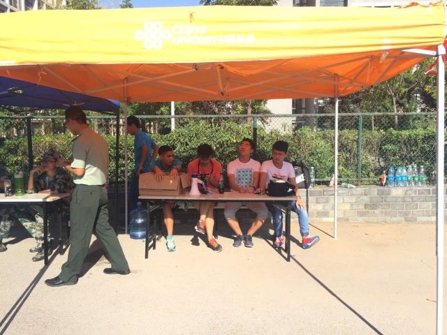 团委学生会于第三运动场搭建了加油站,为正在烈日下致力军训的教官和16级新生送去关心和帮助。