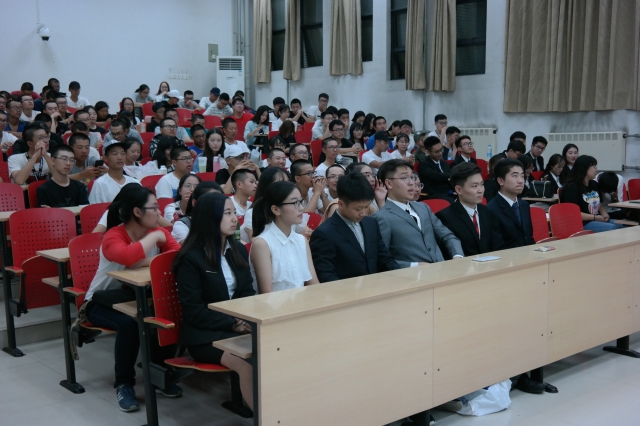 大会主持由组织部副部长由亮和2017级新生艾克担任。一番开场热身过后,团委学生会主席团上台与新生见面。主席们正装出席,现场掌声不断。接下来是各部门宣讲环节。团委学生会各部门负责人悉数登场,详细介绍了各部门的职能、工作内容及历届活动成果情况。其中新闻宣传中心九位部长西装革履一字排开,展现出部门“高大上”的气质。