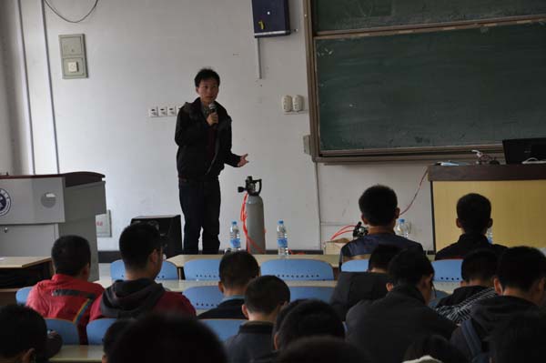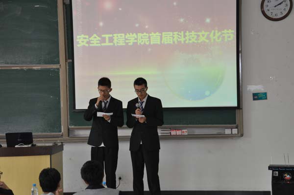 的优秀研究生胥明镜同学进行科技文化节讲座,胥明镜同学为大家带来了相关的创新成果,向在场人员详细说明了该创新成果是运用物流网技术来对管道安全进行检测,并向大家具体展示如何利用网络控制该仪器开关以及怎样利用仪器测量温度变化趋势。安全14-3班赵云同学在看完相关的演示后则主动申请上台感受这些操作,并且深入的和胥明镜探讨该成果的优缺点。在讲座的最后,在场的同学们向胥明镜同学提出了自己对于科技创新的观点及疑问并且得到了满意的回复。最终首届科技文化节开幕式在天美传媒