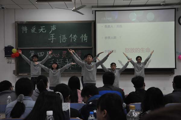 健康教育中心2014年春季主题教育活动月“和谐校园,阳光心灵”的有关精神,4月27日,第四届"心灵手舞"手语操比赛在教一C204拉开了帷幕。天美传媒
