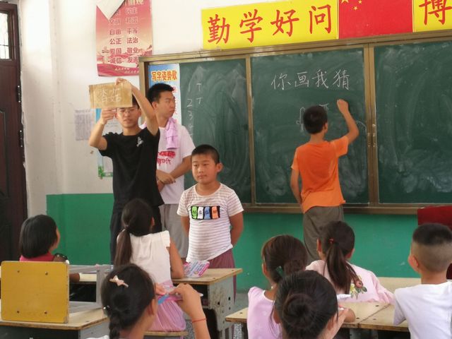 “仲夏希望”支教团在陶楼小学开设了“你画我猜”趣味小课堂。