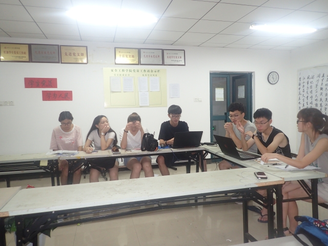 超能勇士暑期实践团的同学们在梅三进行采访视频的汇总整理。