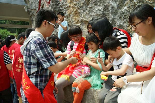 ,给孩子们带去了文具,玩具以及一些食物。随后带领孩子们到淮海战役纪念塔参观。