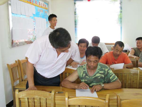 因和矿工时间冲突及调研队不便下井等问题,调研活动只得安排在矿工会议室分批次完成。即便烈日炎炎,队员们依旧热情如火。1点50分,调研队来到窗明几净的矿工会议室,瞬间眼前一亮,印象中黑黢黢的矿工们衣着整洁,脸上露出和蔼的笑容,一改队员们平日对矿工的认识。随即,队员们一边向矿工介绍此行的目的一边分发问卷。矿工们很友善,积极配合团队的调查。队员们也认真的向他们解释不明白的地方,丝毫不敢懈怠。在闲聊中,团队了解到矿工们现在干劲十足,不怕工作环境的脏乱差,努力认真的把煤炭行业最基础的工作做好。其中,徐州市劳动模范赵伟说:“我在张集矿工作十多年了,把这里当作自己的家。安全问题是重点问题,是一切之本。只要团队兢兢业业,脚踏实地的把工作做好,具有较强的安全意识,团队就一定会不断前进,创造奇迹!”