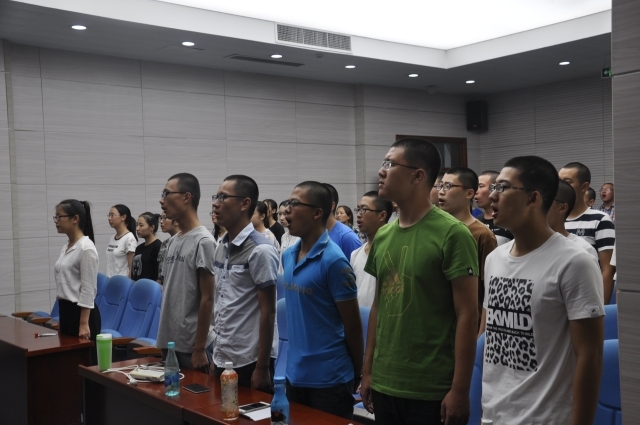 的学长贾硕、学姐李家莹进行歌唱的训练。在唱歌之前,教练要求新生们进行发音练习,通过发出“咦”、“哦”等字节拉长音来达到给嗓子热身的目的。在教练的指导下,每一个新生都用力发出声音,全身心的投入到了训练之中。在发音训练结束后,教练将自己唱歌的方法传授给了新生们,并且进行了多遍演唱练习。每次演唱后,教练都会指出其中问题所在,并要求同学们在下次演唱中改正,并时常提醒同学们应当注意的问题。红歌激昂,新生们的热情也十分高涨,一个个都积极配合,态度认真。