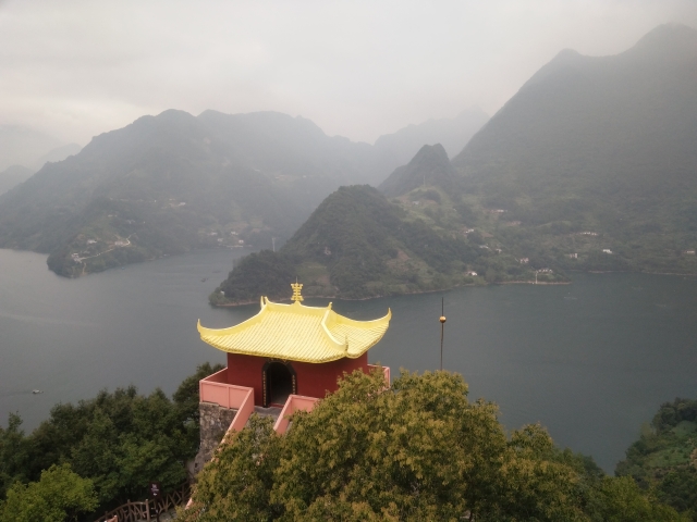上午十一点,部分团队成员抵达武落钟离山。团队成员们看到,整个山体若浮湖面;山下四面环水,碧波荡漾;岛上五峰错落,巉岩磷立。传说巴族首领廪君就诞生在这里。据《后汉书》记载,武落钟离山是巴人祖先廪君务相掷剑称王之地,巴人首领廪君就从这里率领他的部落走向四方。山上留下了大量的历史遗迹和神话传说,后人据此修建了富有民族特色的庙堂、亭阁,供人们凭吊先烈,祭祀祖宗。向王庙凌空高悬,祀奉着廪君的塑像;石神台供奉着两具天然椭圆形石器,印记着古代巴族生殖崇拜的遗痕;赤穴、黑穴为巴人诞生之地,至今依稀可辨;盐女岩酷似土家族少妇,传说是廪君的妻子盐水女神的化身;白虎石栩栩如生,似乎显现着廪君的英灵;白虎堂临水而筑,若浮若定,堂内真实地展示出土家族的历史;纯木结构的山门悬挂着“民族之源”的匾额。