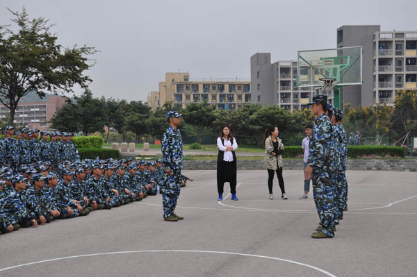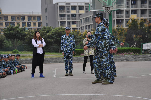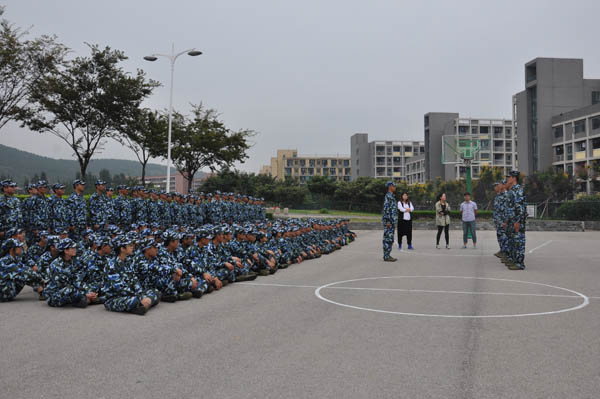 辅导员孙婷老师首先肯定了同学们在军训中的努力,对新生进行了表扬,然后,向同学们指出了出现的一些问题。在孙老师的指导下,他们对自己在训练中暴露出的问题进行了反思和总结。 同时,他们针对自己做的不好的科目进行了训练,巩固了训练成果。艰苦的训练已让他们精疲力竭,但他们的热情丝毫不减。他们的口号声格外嘹亮,气势更盛。在孙老师的鼓励和指导下,同学们充满了斗志,更加积极的进行训练。