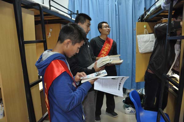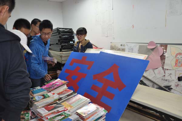 活动于晚9:30正式开始,孙勇和祁钰带领志愿者们在男生宿舍进行募捐,王琪瑶和付艳晴则负责女生宿舍的募捐。活动伊始,孙勇对活动安排进行了详细说明,对部员进行了分组,并强调了活动过程中应该注意的细节。稍后,部员们分为三组分别走进大二、大三、大四的同学们的宿舍进行募捐,在进入宿舍后,志愿者们首先对活动进行礼貌地讲解,同学们在听明来意后纷纷给与了热忱的回应。在募捐过程中,他们不仅拿出了丰富多彩的课外书,还一次次地询问这样的书是否合适,透过他们积极的态度,我们看到了安全学子们对桥上中学的同学们的关心,看到了他们善良、美丽的心。最后志愿者们将募集到的书进行了分类整理和数目统计。此次募捐活动共募集了363本不同种类的书,取得了圆满成功。