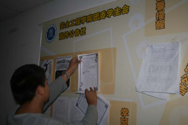 女生部又组织部员前往各宿舍楼宣传栏处张贴海报并向各宿舍发放宣传单让礼仪知识竞赛有更大的宣传效果,使更多的人积极主动参与到礼仪知识竞赛中来。