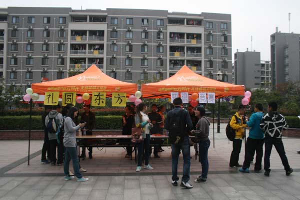 女生部部员在部长韩来颖的带领下顶着凛冽的秋风在三食堂广场进行礼仪知识竞赛的前期宣传活动。女生部全体成员分工明确,有的向过往的老师同学发放关于礼仪知识竞赛的宣传单,有的成员则负责对前来咨询的同学进行答疑解惑,其余的成员则负责记录报名参赛同学的个人信息,经过一个小时的努力,女生部初步完成了宣传活动。