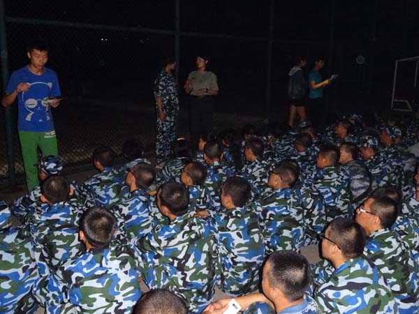 下午6点整,13级新生准时来到训练场地,在两位老师的指导下,同学排成了安排好的队伍的队伍。虽然天色渐暗,但是这并没有打消同学们歌唱的热情,一遍遍的重复,一次次的修正,为的有可能只是一个音调的不同。13级的新生们用着昂扬的斗志展现了要为天美传媒
