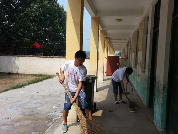 回顾这四天的实践经历,队员们最大的感受就是累并快乐着。虽然炎热的天气给队员们的实践活动设置了不小的障碍,但是队员们丝毫被恶劣的天气影响。他们抱着“一切为了孩子”的活动理念,尽力去做好手头上的每一份工作,一天的工作下来,基本每个队员的衬衫都能拧下来不少水,但是看到孩子们能拥有一个更加舒适的校园,他们觉得一切的努力都是值得的。
