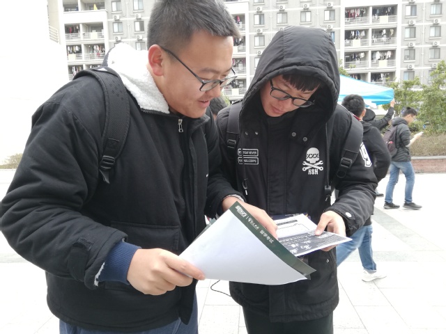 中午12时,志愿者们准时来到三食堂门口开始宣传。据悉,想要参加“高数救援队”活动的同学,可以扫描志愿者们派发传单上面的二维码加入QQ群报名。报名结束后,届时每周将会进行两次辅导,每次一小时。辅导具体时间为周三、周六与周日下午四点至五点,志愿者和接受辅导的同学可以任选其中两个时间点。高数是大学的一门基础理论课程,具有高度的抽象性、严谨的逻辑性和广泛的应用性。因此学好高数不仅关乎学分,也关乎思维的发展。本次活动通过有针对性的高数辅导,以期让同学们在沟通与交流中轻松愉快地提高高数成绩,降低高数挂科率。同时也可以让更多的同学掌握运用数学的基本思想与方法,提升逻辑思维能力,促进全面发展,营造良好的学习氛围。尽管正值中午吃饭的时间,但志愿者们毫不在意。他们忍受着饥饿,在寒风中拿着传单,一遍又一遍耐心地向路过的同学宣传活动的内容,以求更多人可以了解并参加到这个活动中来。从人来人往的高峰期一直到所有人吃完离去,志愿者们一直面带微笑,尽职尽责。