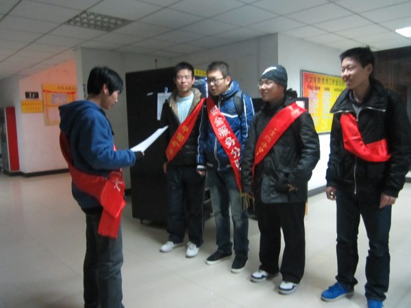 服务分队B组成员于8点55分在梅3大厅集合,由考核部负责点名以及考核,然后由组长方伦对上次检查进行总结,以及在考核过程中应该注意的事项,大约在9点钟左右,针对大一大二的晚自习检查正式开始,在检查过程中,宿舍状况良好,基本没有人员逗留,晚自习检查也达到了预期效果。