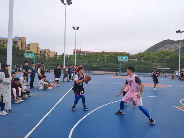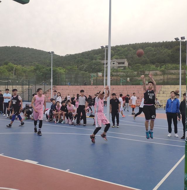 男子篮球队参加在二运篮球场 举行的“行健杯”篮球赛。