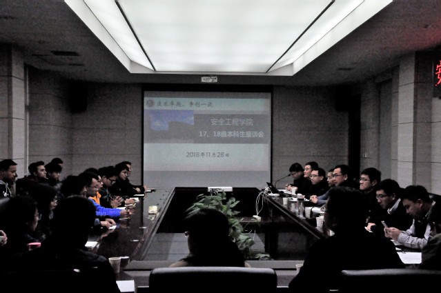 安全专业发展现状,以及正在开展的科研项目,向同学们描绘了安全专业的广阔前景。之后进入同学提问环节,在王恩元院长的鼓励下,同学们纷纷提出自己对课程安排和学科安排方面的一些看法和建议,也有同学希望得到老师关于学习方面的一些指导。教师们根据实际情况考虑是否采纳他们的建议,也耐心地解答了同学们提出问题。最后,教师们综合学生的疑问表达了自己的看法,建议同学们增进与教师间的交流,方便老师掌握学生学习动态,进行更有针对性的安排。