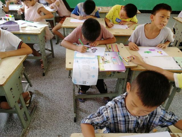 “仲夏希望”支教团在安徽省萧县陶楼小学三年级开设了一堂别开生面的爱国主题绘画课。