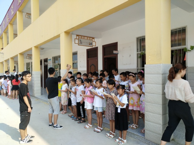 “仲夏希望”支教支教团在安徽萧县陶楼小学筹备年级合唱比赛活动,并组织学生们进行排练。
