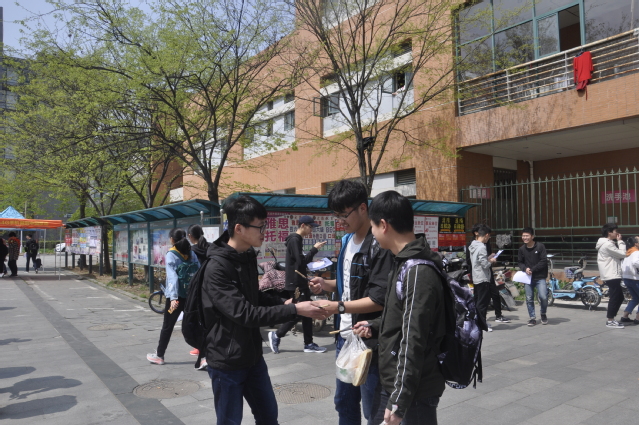 中午12时,公益部的宣传人员向路过食堂的学生发放传单介绍此次环保活动,并赠送一双非一次性的环保筷子,呼吁同学们减少一次性筷子的使用,进而达到节能环保的目的。听过介绍的学生们响应非常积极,领取过环保筷子后,都在活动横幅上签上今后外卖订单中备注“不需附送一次性筷子”或“无需餐具”的承诺。活动负责人表示:“以前时常看到有人在食堂买了两份饭,却抓了一把筷子走了;外卖的筷子也经常用不上,屯了一大堆。本次给大家发放了非一次性的环保筷子,希望尽量能控制一下一次性筷子的使用。”