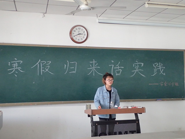 安全16-1班于博四B403召开“寒假归来话实践”主题班会,安全16-1班班主任刘春及安全16-1班全体同学参会。