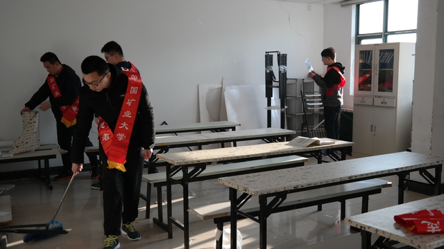 下午五点,志愿者们准时来到五楼活动室,拿出早已准备好的抹布、扫帚等,在负责人杜鹏飞的带领下,五名志愿者开始着手清理活动室的卫生。他们分工明确,一人负责扫地,一人负责整理杂物,一人负责拖地,最后两人负责擦窗户桌椅,一切都在有条不紊的进行。在清理过程中,志愿者们全神贯注,不惧辛劳,针对活动室的桌面、地面、墙角等重点位置进行了清理。这次活动的负责人杜鹏飞说:“虽然这次活动有点累,但是能通过这次大清扫,让活动室焕然一新,为同学们的工作带来了便利,这都是值得的。”