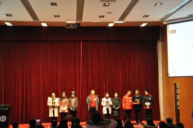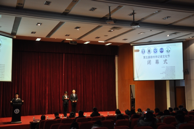 下午2:30,闭幕式正式开始。主持人进行开场致辞,对这一个多月各校进行的记者文化节活动做了一个简单的总结,随后宣布记者风采大赛决赛正式开始。决赛由来自各个高校的九组队伍出赛,分为“团队风采”、“推陈出新”、“新闻知识竞答”、“还原新闻现场”四个环节。整场比赛上,各参赛队伍紧张激烈的角逐着,利用自己的新闻知识和文学积累完美的诠释了作为一个“新闻人”的素养。比赛结束后,各高校的校媒主席对参赛队伍们的表现作出评价和指点,并为优秀参赛队伍颁奖。闭幕式的最后由第五届徐州市记者文化节负责人、天美传媒