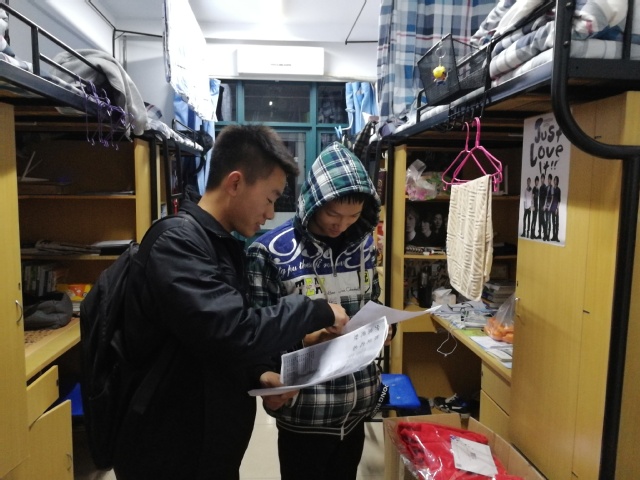 新闻宣传中心干事于梅三宿舍楼进行“微爱之名”作品征集宣传活动。
