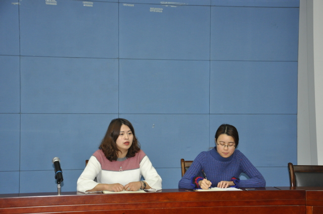 14级辅导员孙婷主持,兼职辅导员王敏、毕业班各班班长、团支书以及学习委员参与本次会议。
