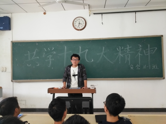下午三点,安全16-1班于博四A106集结,同学们准时到达地点。本次学习研讨会由安全16-1班团支书主持召开,安全16-1班全体成员参加此次学习研讨会。研讨会开始,同学们各自坐在座位上,安静的观看党的十九大召开。观看过程中,同学们保持安静,在本子上记录会议的重要内容。看完十九大后,班长与团支书依次上台发表自己对十九大的看法,提出自己的疑问,同学们认真聆听,仔细记录。当看法分享完后,团支书开始组织同学们一起讨论,商量着十九大的重要意义及所带来的影响,对大学生又有些什么样的影响。讨论过程中,同学们各抒己见,发表自己的看法,谈论相当热烈。活动最后,团支书上台总结此次学习研讨会的收货,并鼓舞同学们要认识到身上的重担。