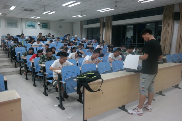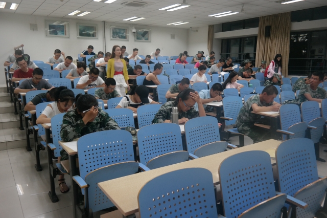 17级全体新生参加此次考试,辅导员刘世通,陶冰冰,陈愚,王敏担任监考人员。