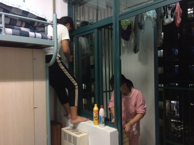 傍晚六点半,大二、大三老生通过申请来到新生宿舍,在进行简单的工作分配后,大家便进入各自负责的宿舍。在新生宿舍,学长学姐们向新生介绍了内务整理的具体内容和要求,包括宿舍室内清洁、阳台卫生等等。因为内务评比要求十分严格,老生们又将每个细节进行讲解并强调,还为新生们提供一些以前内务整理留下的宝贵经验。新生们认真记下内务中可能出现的问题以及所提供的解决方法。在学长学姐们的指导下,新生们把各项事情做得井井有条,让整理工作得以有序高效的进行。晚上十点,辅导员刘世通、陶冰冰来到新生宿舍进行检查,在检查完了以后,刘老师说道:“同学们内务整理进度不错,今年继续加油,争取内务第一。”