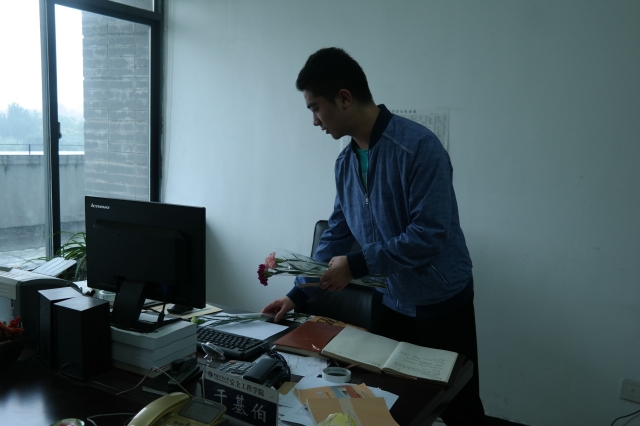 精心挑选教师节礼物并手写贺卡为老师祝福。之后来到矿科A 300为老师送去教师节礼物。但由于老师去检查寝室卫生的缘故,矿科A300老师都不在。为不打扰老师们的工作,主席团们便把义务贺卡整齐的摆放在对应的老师办公桌上,并且给每一个老师电话祝福:祝福节日快乐。老师们对于主席团送礼物的行为也感到非常欣慰:“今天我们很开心,桃李不言,下自成蹊,作为老师,是我们的荣幸,也是我们的光荣。”