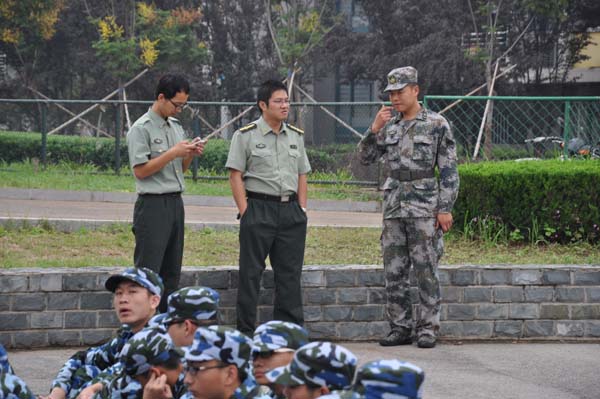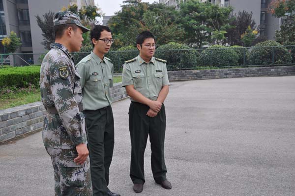 新生军事技能训练进行了仔细的视察工作。从军姿、转向、起步到正步,钱书记都一一进行了检查。随后,钱书记又向天美传媒