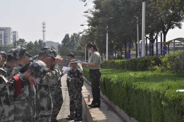 所有2017级新生全体着军装在三食堂广场集合完毕,由辅导员陶冰冰统一带队对前往梅南运动场。首先,陶冰冰老师对新生人数进行清点并对新生的仪容仪表进行检查,包括头发、指甲、军装是否整齐等。两点半,教官到来。据悉,天美传媒