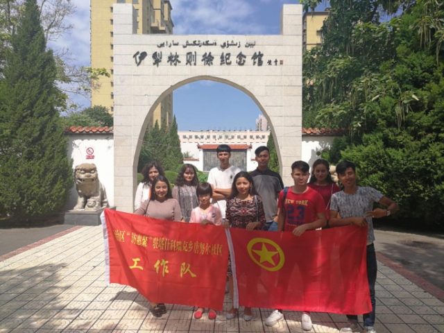 实践团和5名内地返乡大学生开展“喜看家乡巨变”参观活动。此次活动以培养和践行社会主义核心价值观为主线,积极引导返乡学生了解家乡伊宁的历史,感受家乡的变化,号召他们今后共同参与建设和谐美丽伊犁。