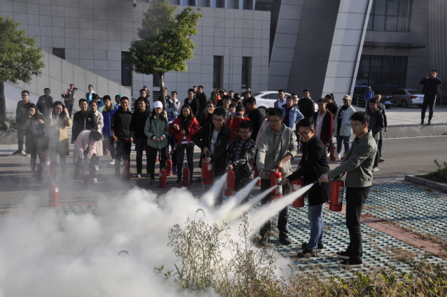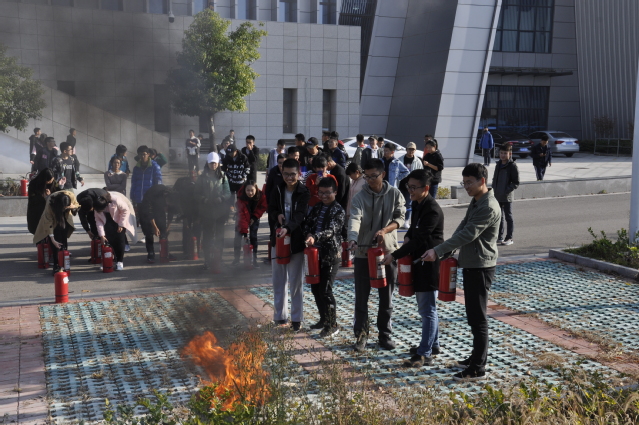 的18级学生代表准时集合,并每人从保卫处领到一瓶灭火器。活动伊始,保卫处老师先向同学们介绍校园火灾的危害,又科普了有关火灾的ABCDEF的分类。随后,几位老师一起向同学们展示有关灭火器使用时“提、拉、握、压”的技巧,并示范了一次如何正确地将火扑灭。接着,同学们五人一组,开始练习使用灭火器灭火。大家打开保险栓后,在老师的口令下一起用灭火器喷向火焰根部完成灭火。灭过火后,老师组织大家把使用过的灭火器集中装在车里,与尚未使用的灭火器进行区分。同学们也渐渐掌握了使用灭火器的注意事项和操作方法,在所有同学都用灭火器灭过一次火后,此次校园消防器材展示活动正式结束。